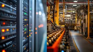 Server racks powering modern manufacturing plant automation